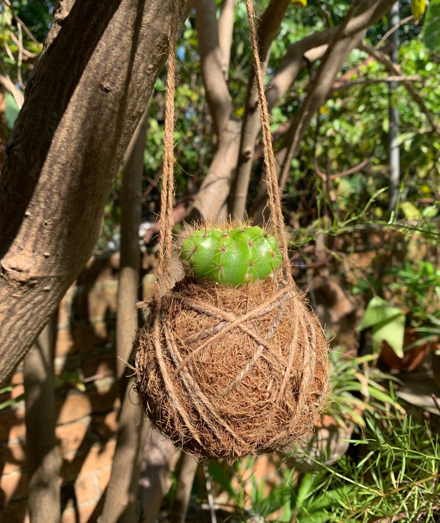 Kokedama de cactus disponible.